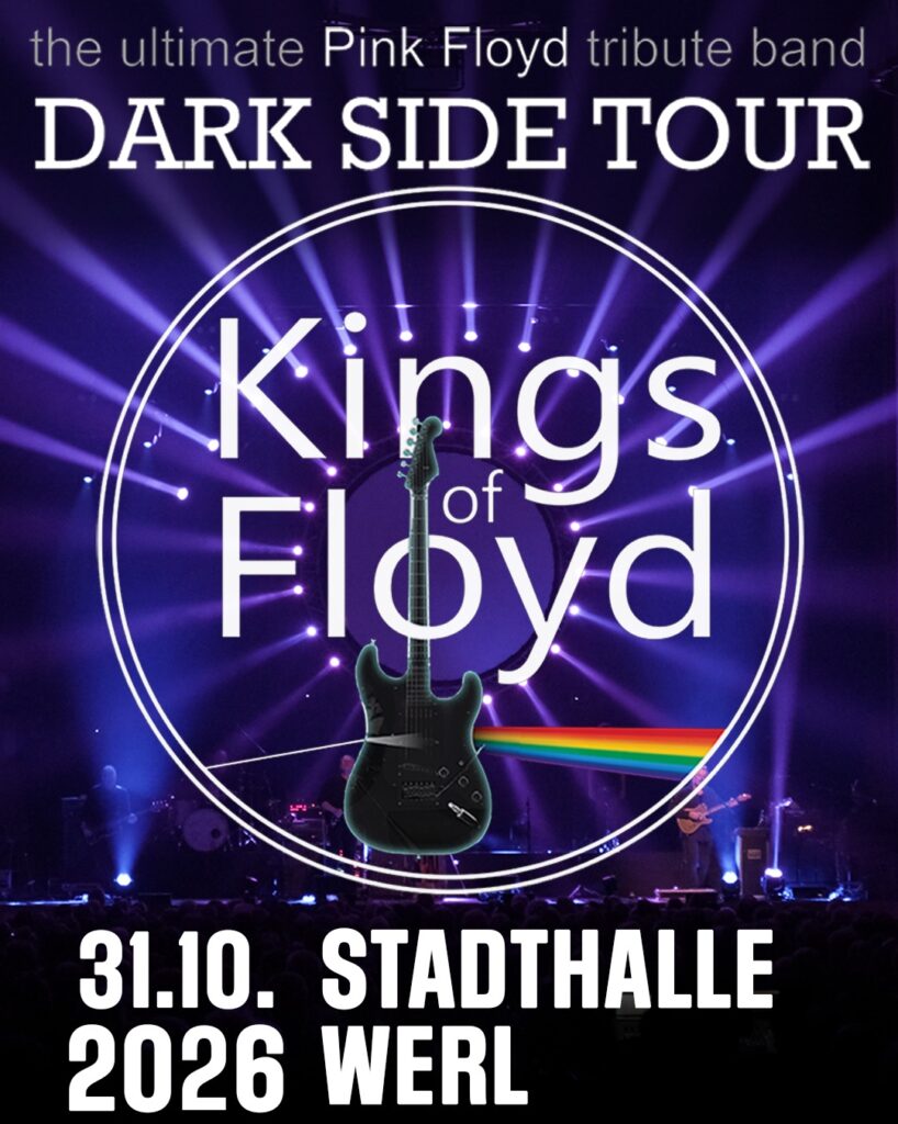 Eine unvergessliche Hommage an Pink Floyd kehrt zurück nach Werl! Die gefeierten Meister der Pink Floyd-Tribute-Band-Szene, Kings Of Floyd, sind zurück in unserer Stadthalle und bringen erneut das legendäre Erbe der progressiven Rockikonen auf unsere Bühne!